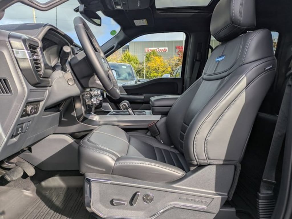 Equipment Group 702A High,Engine: 3.5L Powerboost Full-Hybrid V6,Fx4 Off-Road Package,Panoramic Roof,Leather Seats,Navigation System,Lane Keeping Assist,Keyless Start,Heads-Up Display,Cooled Front Seat(S),Agate Black Metallic,Black/Blue; Unique Multi-Contour Leather Bucket Seats,Electronic Locking W/3.73 Axle Ratio,Front License Plate Bracket,Transmission: Hybrid Electronic 10-Speed Automatic